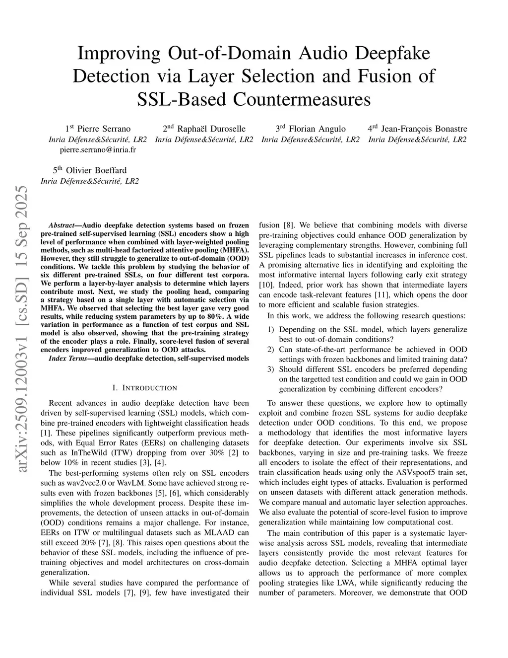 Improving Out-of-Domain Audio Deepfake Detection via Layer Selection and Fusion of SSL-Based Countermeasures
