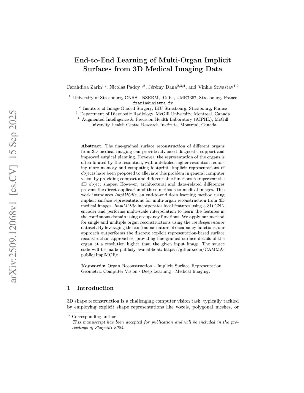 End-to-End Learning of Multi-Organ Implicit Surfaces from 3D Medical Imaging Data