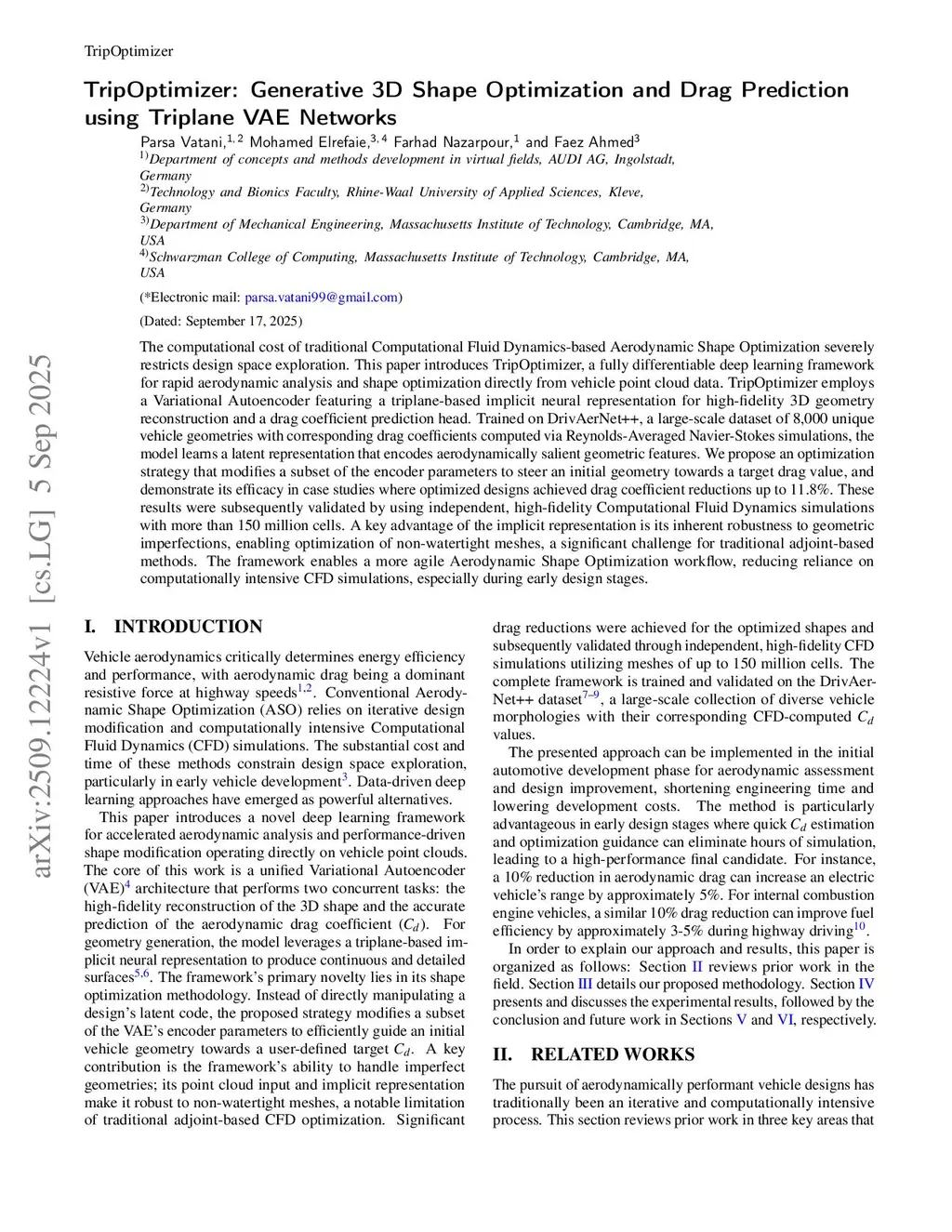 TripOptimizer: Generative 3D Shape Optimization and Drag Prediction using Triplane VAE Networks