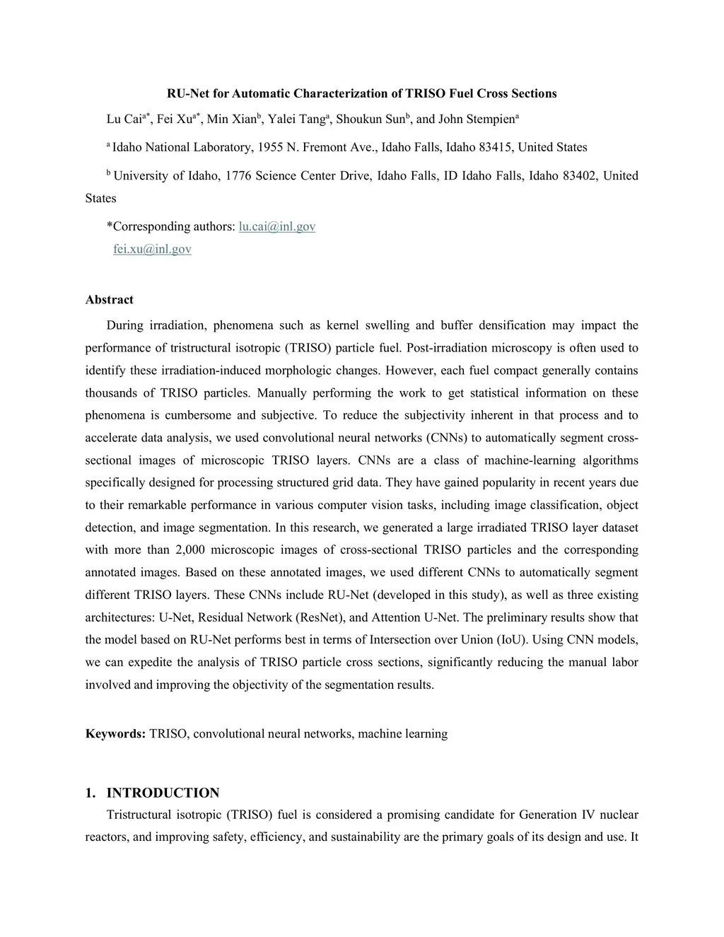 RU-Net for Automatic Characterization of TRISO Fuel Cross Sections