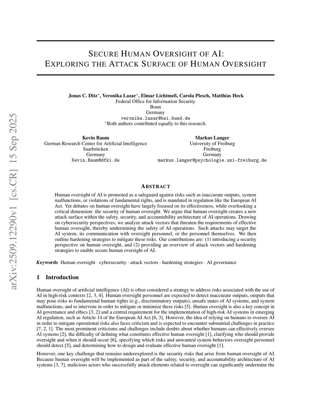 Human oversight of AI is promoted as a safeguard against risks such as inaccurate outputs, system malfunctions, or violations of fundamental rights, and is mandated in regulation like the European AI Act. Yet debates on human oversight have largely focused on its effectiveness, while overlooking a critical dimension: the security of human oversight. We argue that human oversight creates a new attack surface within the safety, security, and accountability architecture of AI operations. Drawing on cybersecurity perspectives, we model human oversight as an IT application for the purpose of systematic threat modeling of the human oversight process. Threat modeling allows us to identify security risks within human oversight and points towards possible mitigation strategies. Our contributions are: (1) introducing a security perspective on human oversight, (2) offering researchers and practitioners guidance on how to approach their human oversight applications from a security point of view, and (3) providing a systematic overview of attack vectors and hardening strategies to enable secure human oversight of AI.