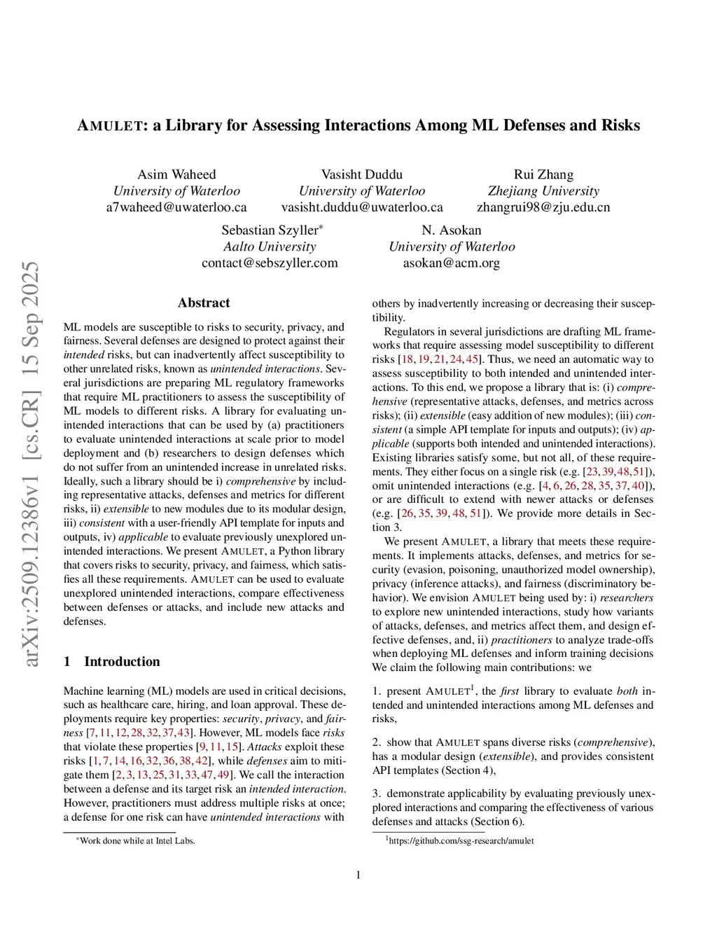 Amulet: a Python Library for Assessing Interactions Among ML Defenses and Risks