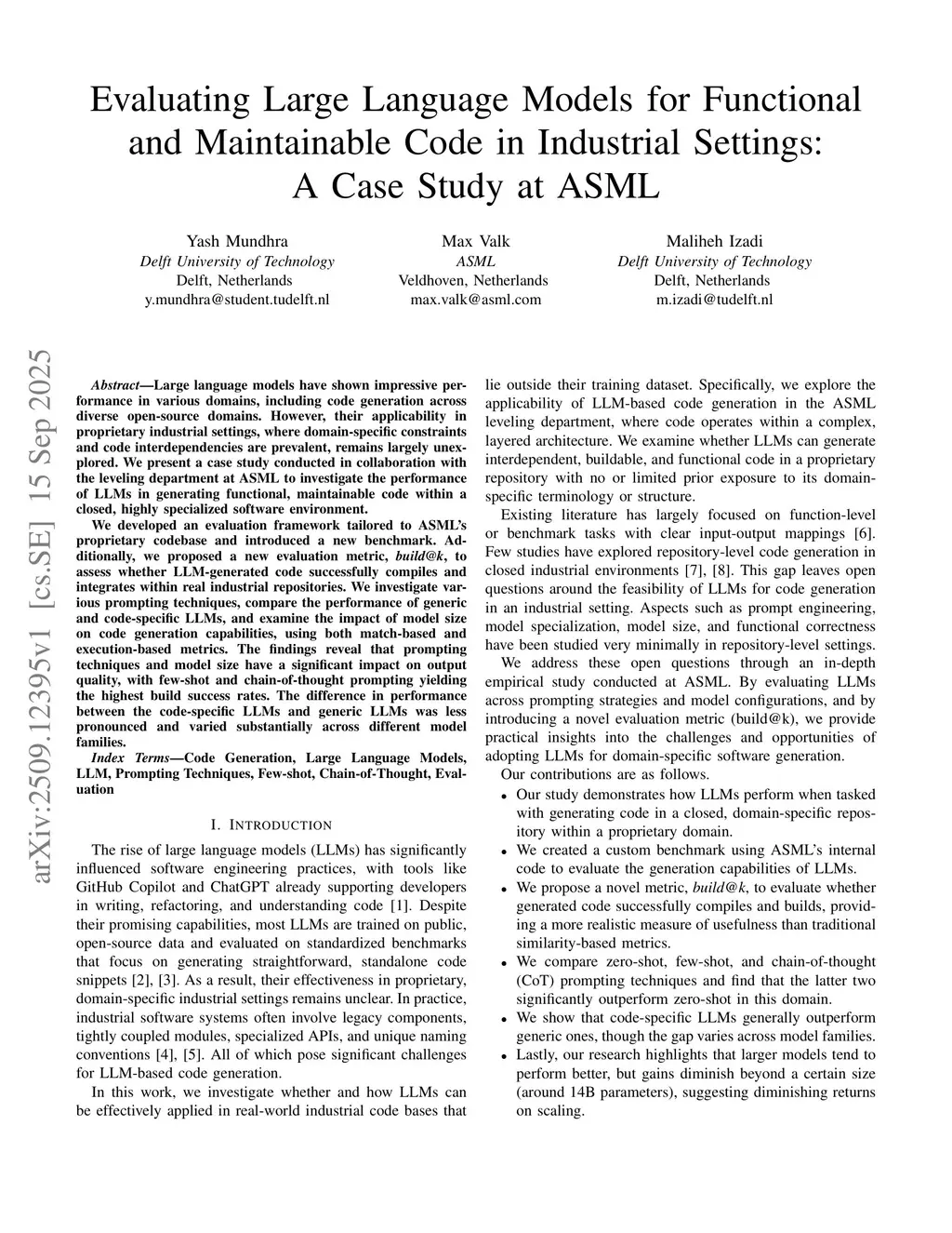 Evaluating Large Language Models for Functional and Maintainable Code in Industrial Settings: A Case Study at ASML