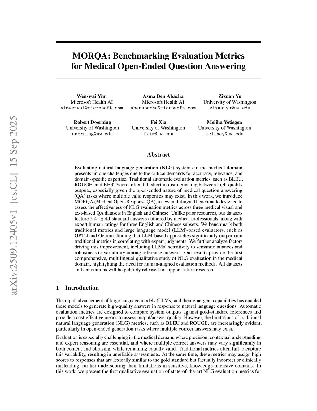 MORQA: Benchmarking Evaluation Metrics for Medical Open-Ended Question Answering