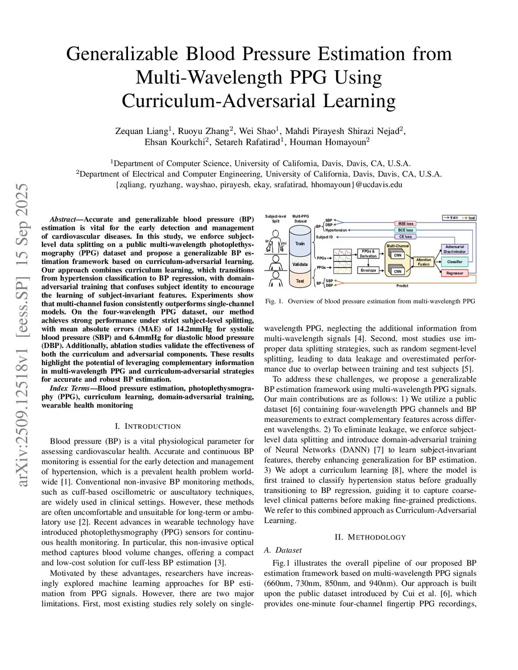 Generalizable Blood Pressure Estimation from Multi-Wavelength PPG Using Curriculum-Adversarial Learning