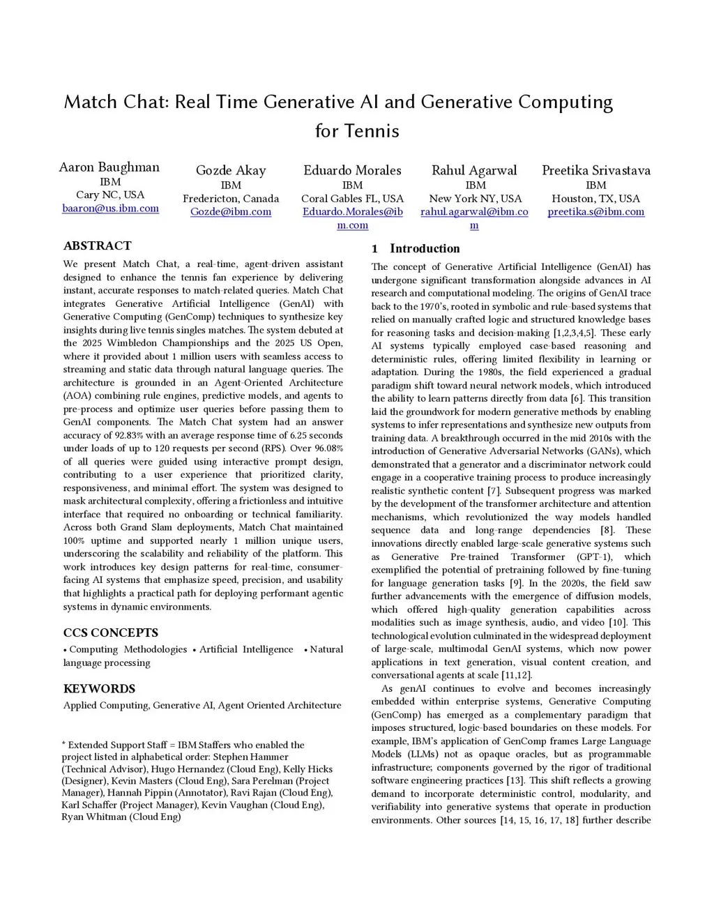 Match Chat: Real Time Generative AI and Generative Computing for Tennis