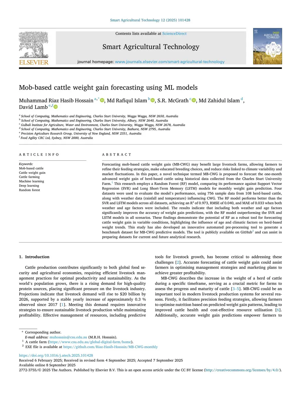 Mob-based cattle weight gain forecasting using ML models