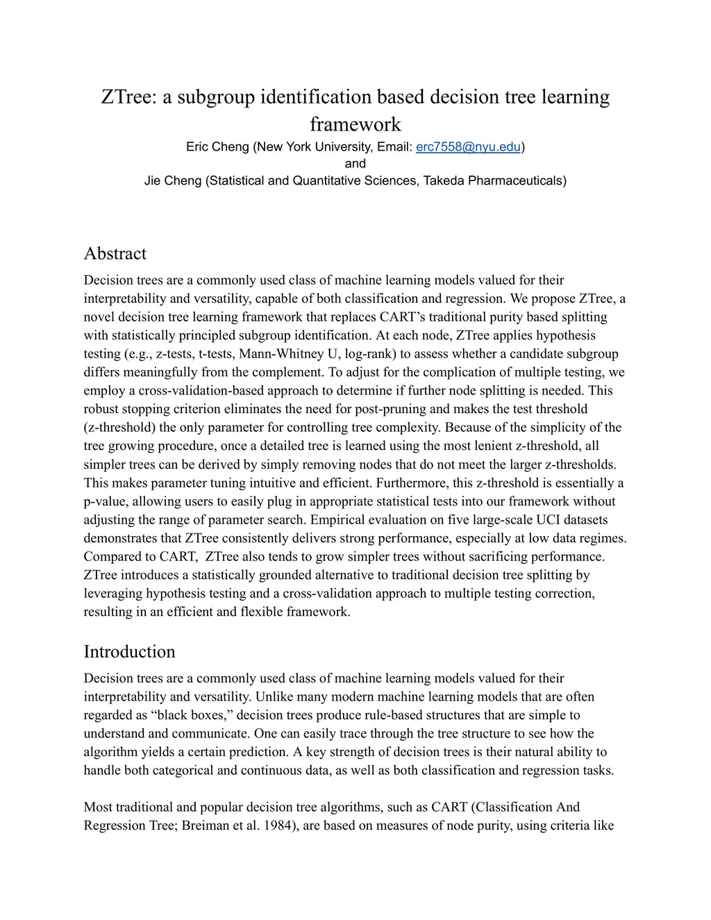 ZTree: A Subgroup Identification Based Decision Tree Learning Framework
