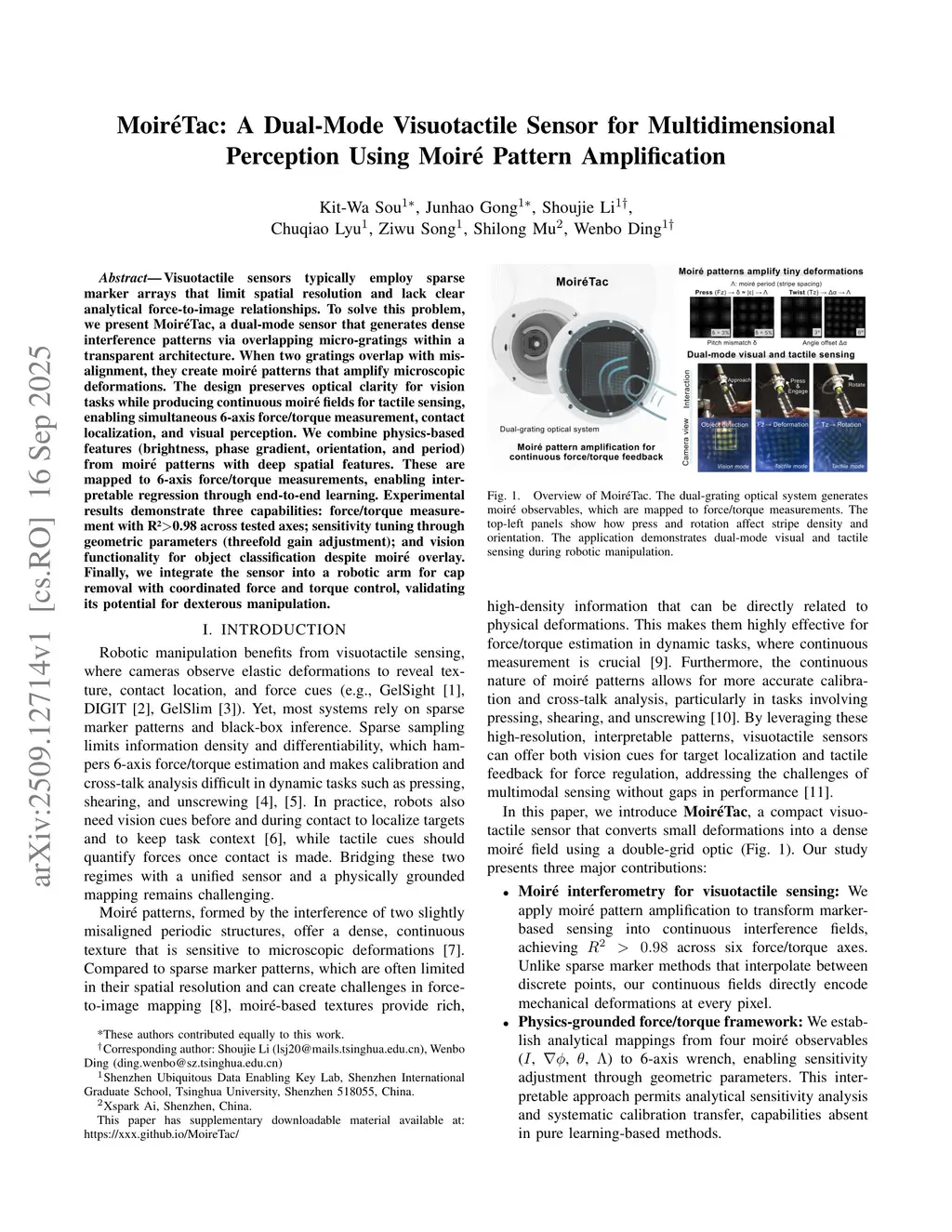MoiréTac: A Dual-Mode Visuotactile Sensor for Multidimensional Perception Using Moiré Pattern Amplification