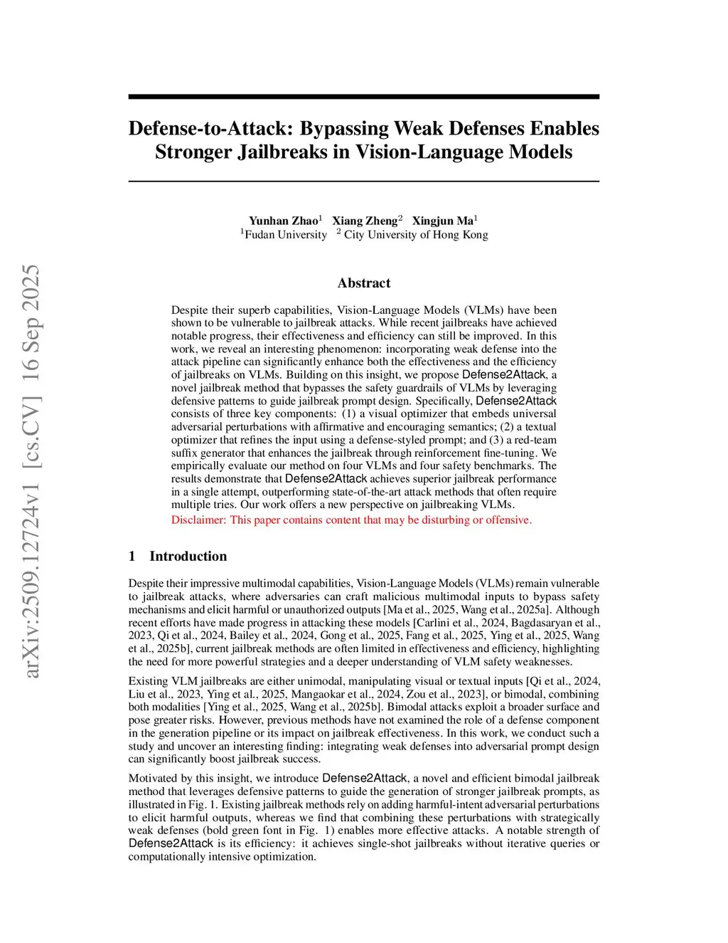 Defense-to-Attack: Bypassing Weak Defenses Enables Stronger Jailbreaks in Vision-Language Models