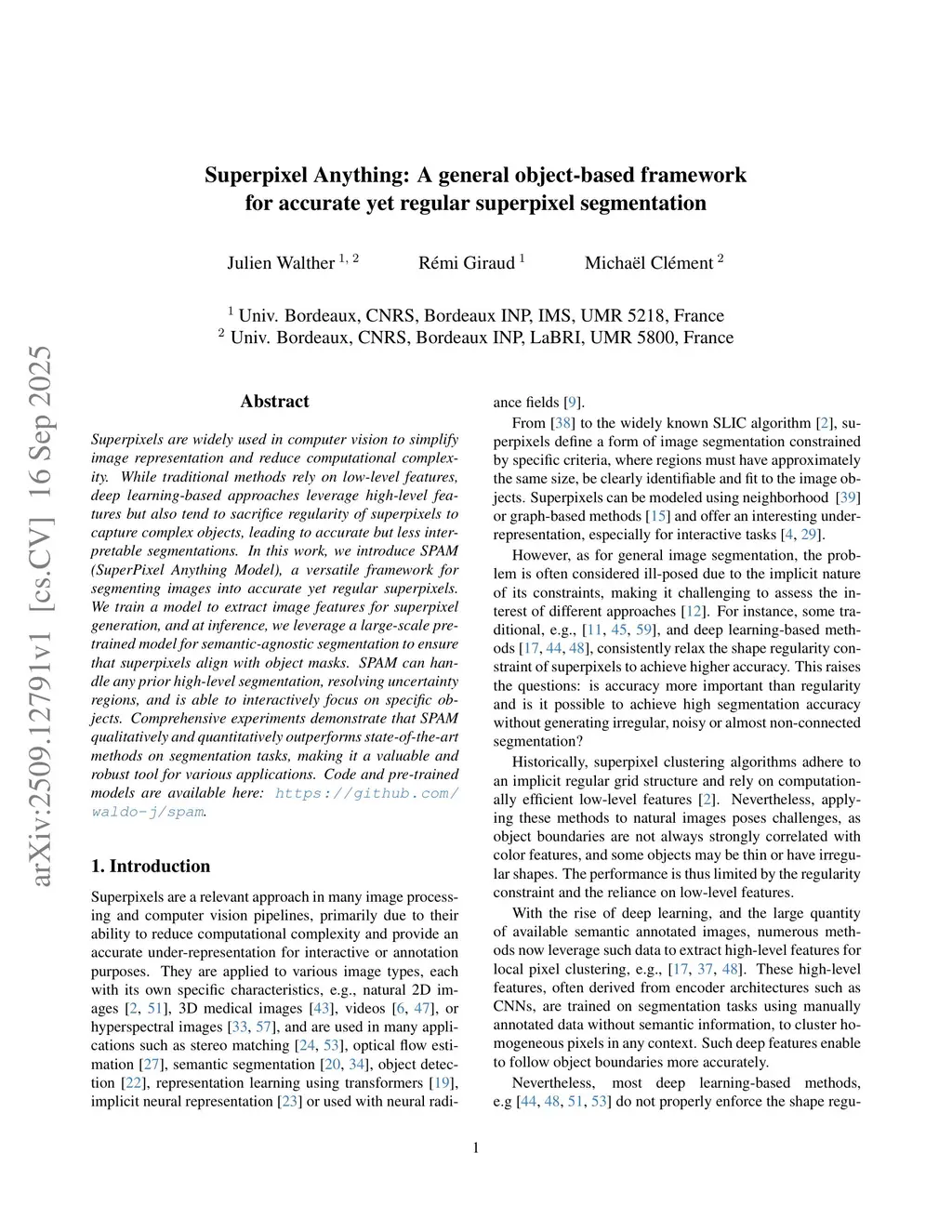Superpixels are widely used in computer vision to simplify image representation and reduce computational complexity. While traditional methods rely on low-level features, deep learning-based approaches leverage high-level features but also tend to sacrifice regularity of superpixels to capture complex objects, leading to accurate but less interpretable segmentations. In this work, we introduce SPAM (SuperPixel Anything Model), a versatile framework for segmenting images into accurate yet regular superpixels. We train a model to extract image features for superpixel generation, and at inference, we leverage a large-scale pretrained model for semantic-agnostic segmentation to ensure that superpixels align with object masks. SPAM can handle any prior high-level segmentation, resolving uncertainty regions, and is able to interactively focus on specific objects. Comprehensive experiments demonstrate that SPAM qualitatively and quantitatively outperforms state-of-the-art methods on segmentation tasks, making it a valuable and robust tool for various applications. Code and pre-trained models are available here:this https URL.