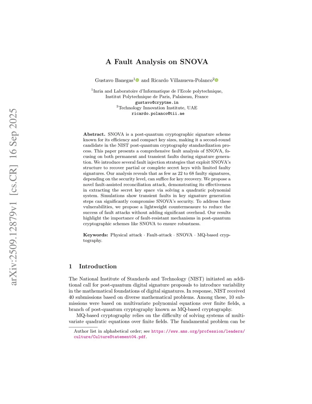 A Fault Analysis on SNOVA