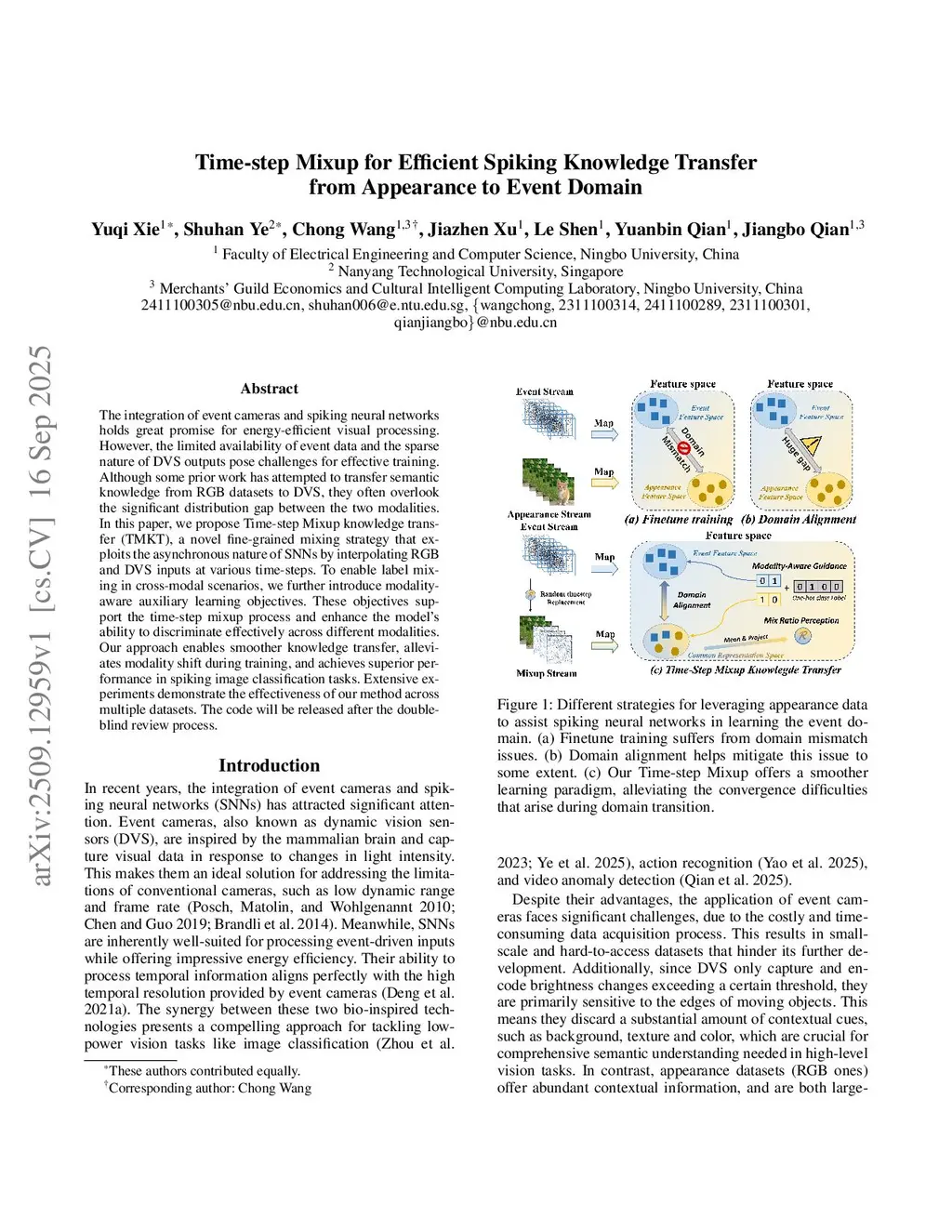 Time-step Mixup for Efficient Spiking Knowledge Transfer from Appearance to Event Domain