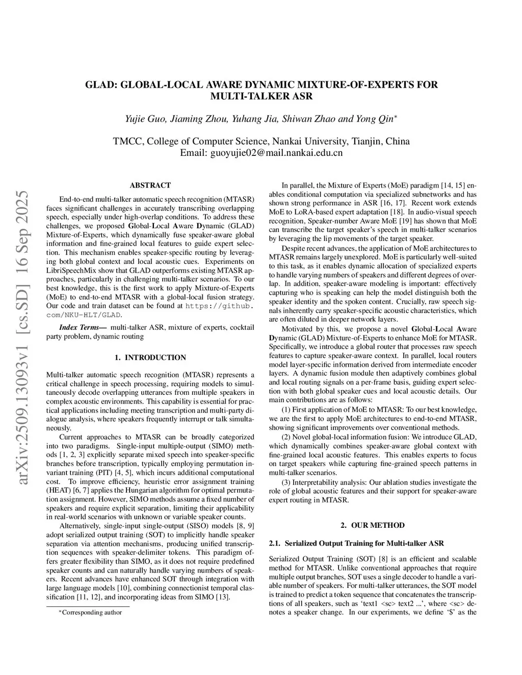 GLAD: Global-Local Aware Dynamic Mixture-of-Experts for Multi-Talker ASR