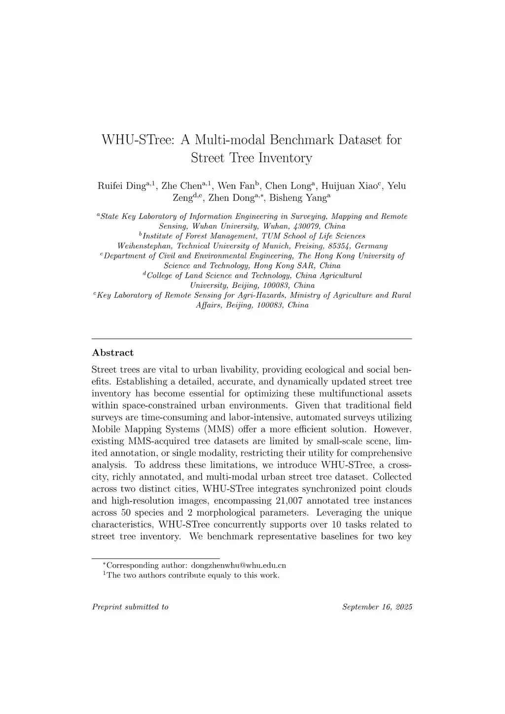 WHU-STree: A Multi-modal Benchmark Dataset for Street Tree Inventory