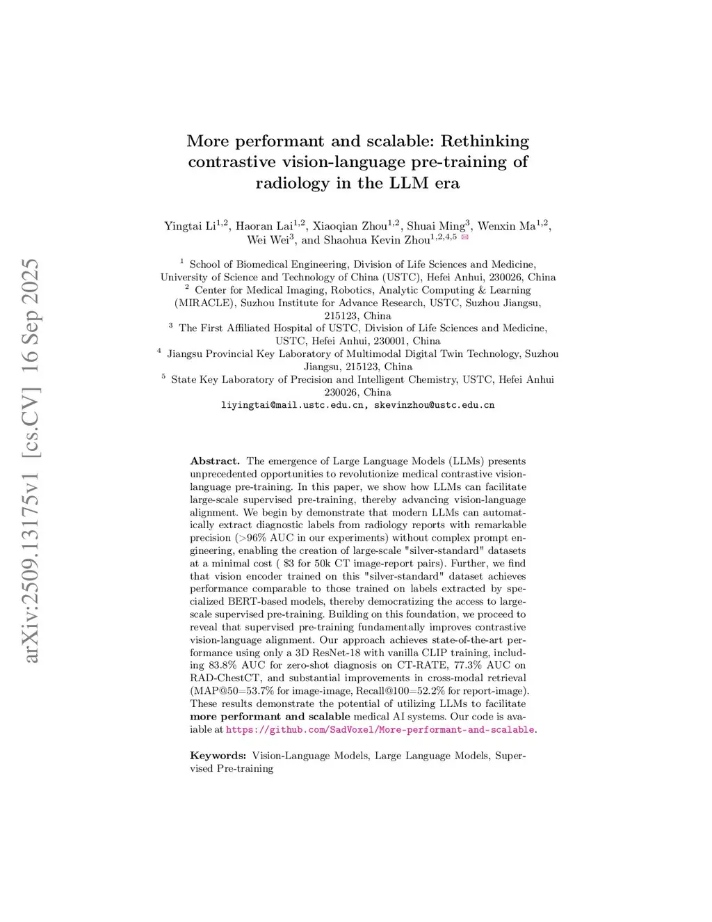 More performant and scalable: Rethinking contrastive vision-language pre-training of radiology in the LLM era