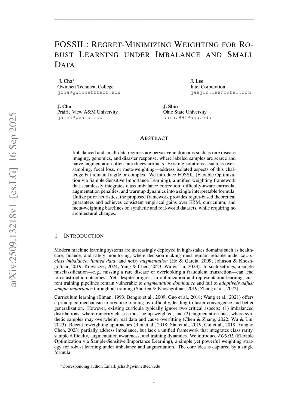 FOSSIL: Regret-minimizing weighting for robust learning under imbalance and small data
