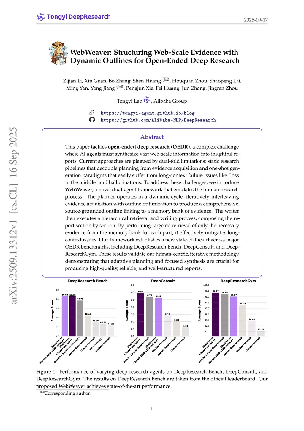 This paper tackles open-ended deep research (OEDR), a complex challenge where AI agents must synthesize vast web-scale information into insightful reports. Current approaches are plagued by dual-fold limitations: static research pipelines that decouple planning from evidence acquisition and one-shot generation paradigms that easily suffer from long-context failure issues like "loss in the middle" and hallucinations. To address these challenges, we introduce WebWeaver, a novel dual-agent framework that emulates the human research process. The planner operates in a dynamic cycle, iteratively interleaving evidence acquisition with outline optimization to produce a comprehensive, source-grounded outline linking to a memory bank of evidence. The writer then executes a hierarchical retrieval and writing process, composing the report section by section. By performing targeted retrieval of only the necessary evidence from the memory bank for each part, it effectively mitigates long-context issues. Our framework establishes a new state-of-the-art across major OEDR benchmarks, including DeepResearch Bench, DeepConsult, and DeepResearchGym. These results validate our human-centric, iterative methodology, demonstrating that adaptive planning and focused synthesis are crucial for producing high-quality, reliable, and well-structured reports.