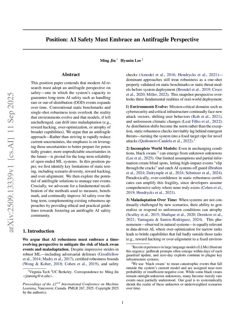 This position paper contends that modern AI research must adopt an antifragile perspective on safety -- one in which the system's capacity to guarantee long-term AI safety such as handling rare or out-of-distribution (OOD) events expands over time. Conventional static benchmarks and single-shot robustness tests overlook the reality that environments evolve and that models, if left unchallenged, can drift into maladaptation (e.g., reward hacking, over-optimization, or atrophy of broader capabilities). We argue that an antifragile approach -- Rather than striving to rapidly reduce current uncertainties, the emphasis is on leveraging those uncertainties to better prepare for potentially greater, more unpredictable uncertainties in the future -- is pivotal for the long-term reliability of open-ended ML systems. In this position paper, we first identify key limitations of static testing, including scenario diversity, reward hacking, and over-alignment. We then explore the potential of antifragile solutions to manage rare events. Crucially, we advocate for a fundamental recalibration of the methods used to measure, benchmark, and continually improve AI safety over the long term, complementing existing robustness approaches by providing ethical and practical guidelines towards fostering an antifragile AI safety community.
