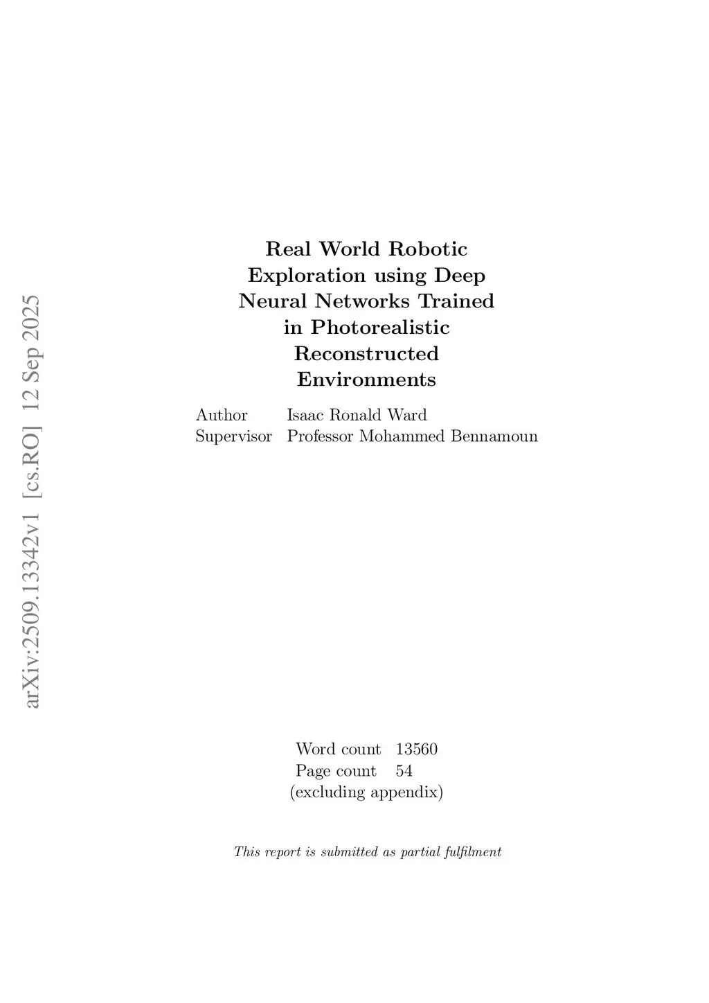 Real World Robotic Exploration using Deep Neural Networks Trained in Photorealistic Reconstructed Environments