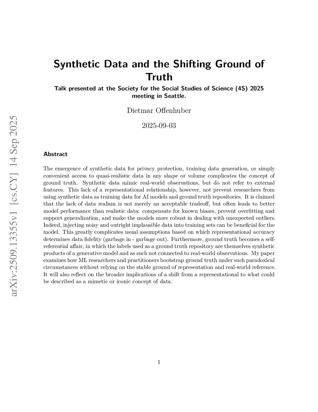 The emergence of synthetic data for privacy protection, training data generation, or simply convenient access to quasi-realistic data in any shape or volume complicates the concept of ground truth. Synthetic data mimic real-world observations, but do not refer to external features. This lack of a representational relationship, however, not prevent researchers from using synthetic data as training data for AI models and ground truth repositories. It is claimed that the lack of data realism is not merely an acceptable tradeoff, but often leads to better model performance than realistic data: compensate for known biases, prevent overfitting and support generalization, and make the models more robust in dealing with unexpected outliers. Indeed, injecting noisy and outright implausible data into training sets can be beneficial for the model. This greatly complicates usual assumptions based on which representational accuracy determines data fidelity (garbage in - garbage out). Furthermore, ground truth becomes a self-referential affair, in which the labels used as a ground truth repository are themselves synthetic products of a generative model and as such not connected to real-world observations. My paper examines how ML researchers and practitioners bootstrap ground truth under such paradoxical circumstances without relying on the stable ground of representation and real-world reference. It will also reflect on the broader implications of a shift from a representational to what could be described as a mimetic or iconic concept of data.