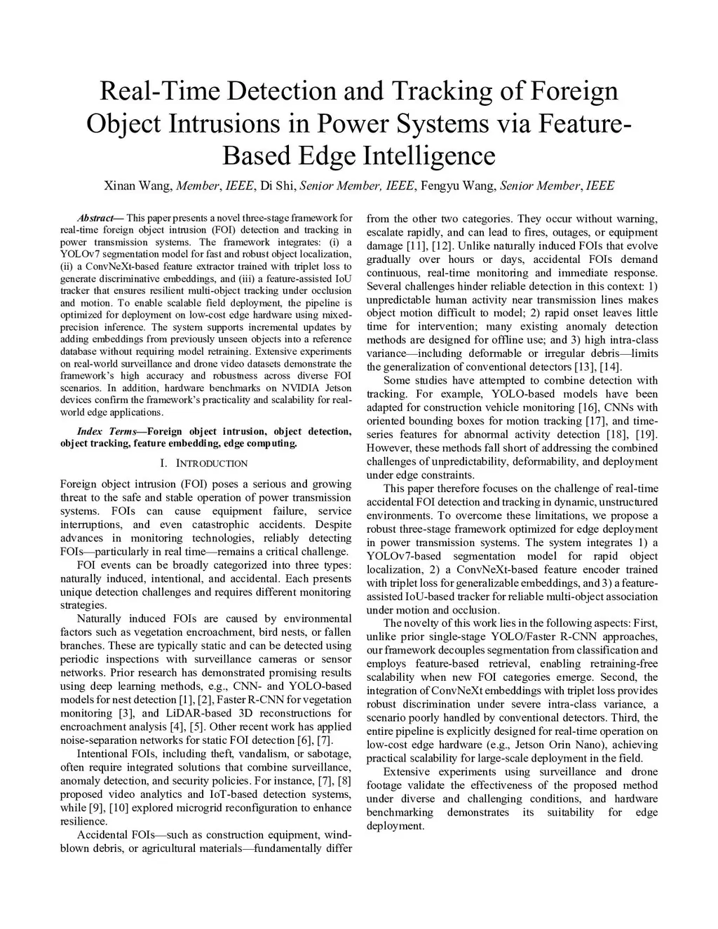 Real-Time Detection and Tracking of Foreign Object Intrusions in Power Systems via Feature-Based Edge Intelligence