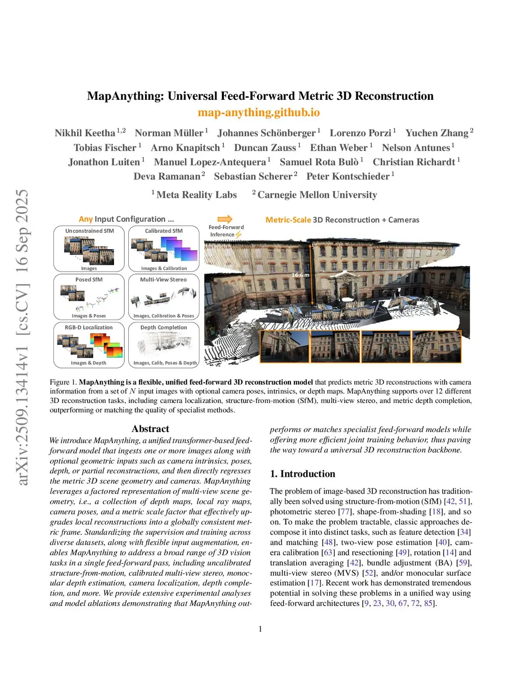 MapAnything: Universal Feed-Forward Metric 3D Reconstruction