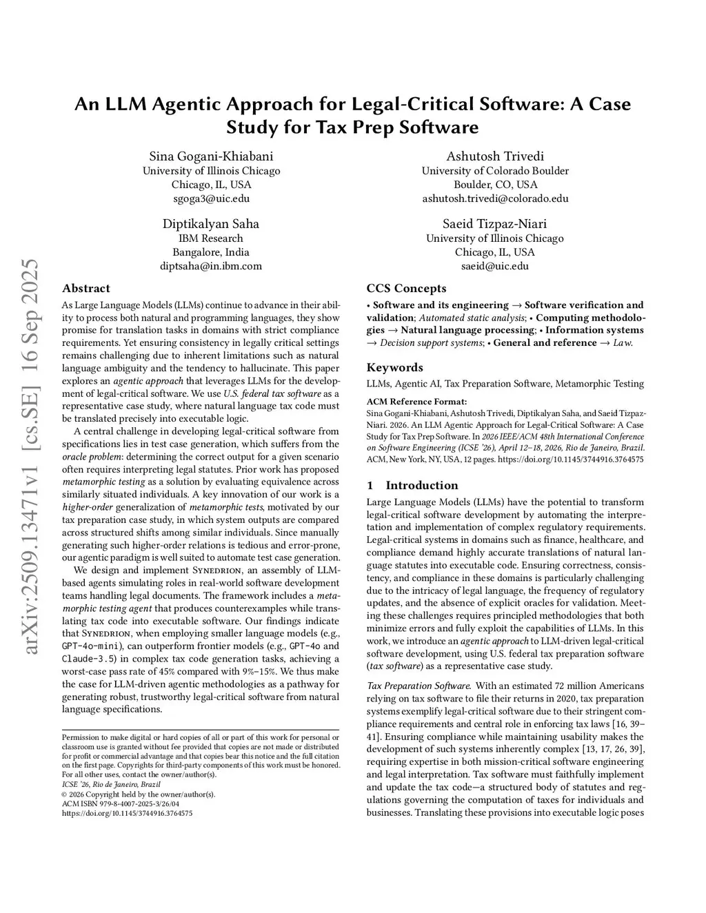 An LLM Agentic Approach for Legal-Critical Software: A Case Study for Tax Prep Software