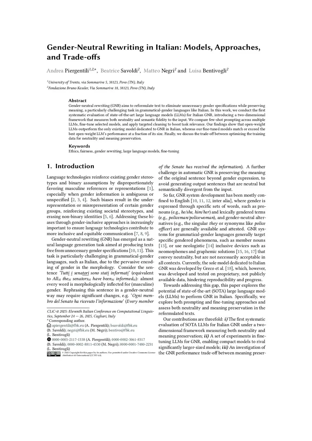Gender-neutral rewriting (GNR) aims to reformulate text to eliminate unnecessary gender specifications while preserving meaning, a particularly challenging task in grammatical-gender languages like Italian. In this work, we conduct the first systematic evaluation of state-of-the-art large language models (LLMs) for Italian GNR, introducing a two-dimensional framework that measures both neutrality and semantic fidelity to the input. We compare few-shot prompting across multiple LLMs, fine-tune selected models, and apply targeted cleaning to boost task relevance. Our findings show that open-weight LLMs outperform the only existing model dedicated to GNR in Italian, whereas our fine-tuned models match or exceed the best open-weight LLM's performance at a fraction of its size. Finally, we discuss the trade-off between optimizing the training data for neutrality and meaning preservation.