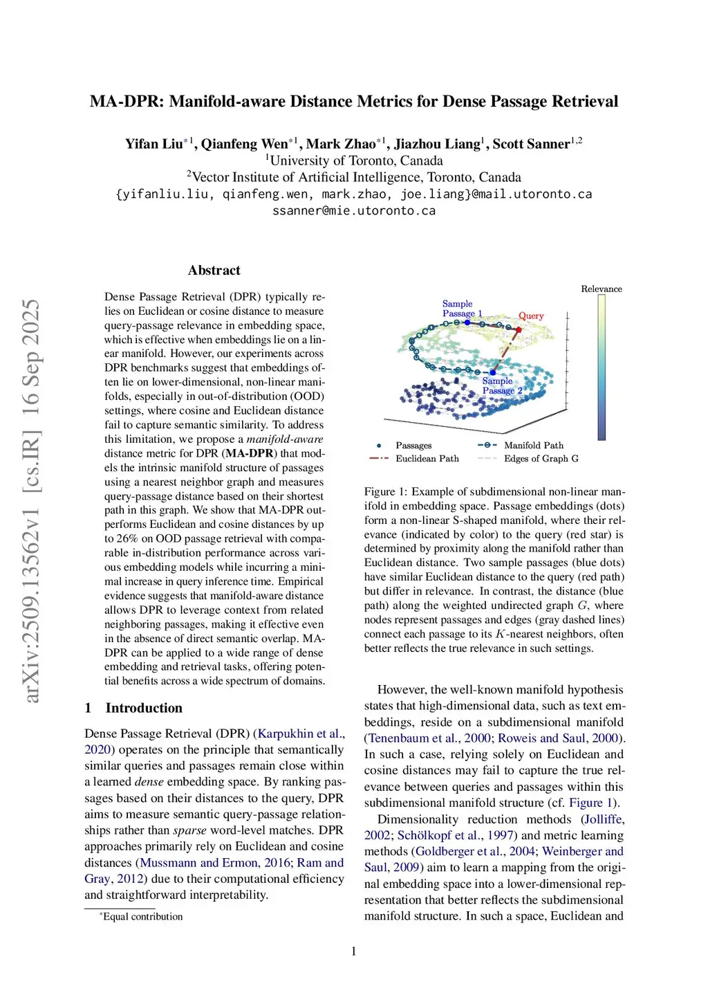 MA-DPR: Manifold-aware Distance Metrics for Dense Passage Retrieval