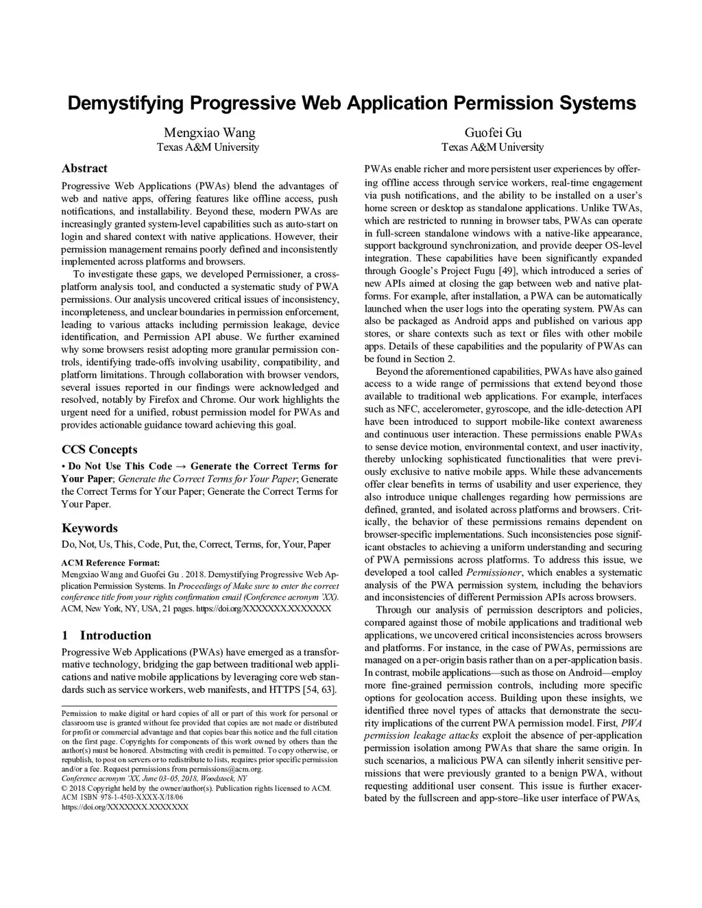 Progressive Web Applications (PWAs) blend the advantages of web and native apps, offering features like offline access, push notifications, and installability. Beyond these, modern PWAs are increasingly granted system-level capabilities such as auto-start on login and shared context with native applications. However, their permission management remains poorly defined and inconsistently implemented across platforms and browsers.To investigate these gaps, we developed Permissioner, a cross-platform analysis tool, and conducted a systematic study of PWA permissions. Our analysis uncovered critical issues of inconsistency, incompleteness, and unclear boundaries in permission enforcement, leading to various attacks including permission leakage, device identification, and Permission API abuse. We further examined why some browsers resist adopting more granular permission controls, identifying trade-offs involving usability, compatibility, and platform limitations. Through collaboration with browser vendors, several issues reported in our findings were acknowledged and resolved, notably by Firefox and Chrome. Our work highlights the urgent need for a unified, robust permission model for PWAs and provides actionable guidance toward achieving this goal.