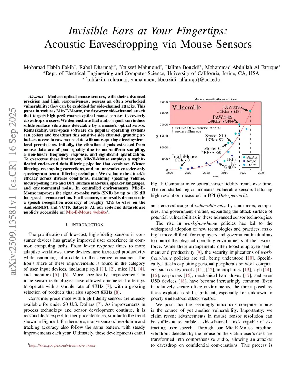 Invisible Ears at Your Fingertips: Acoustic Eavesdropping via Mouse Sensors