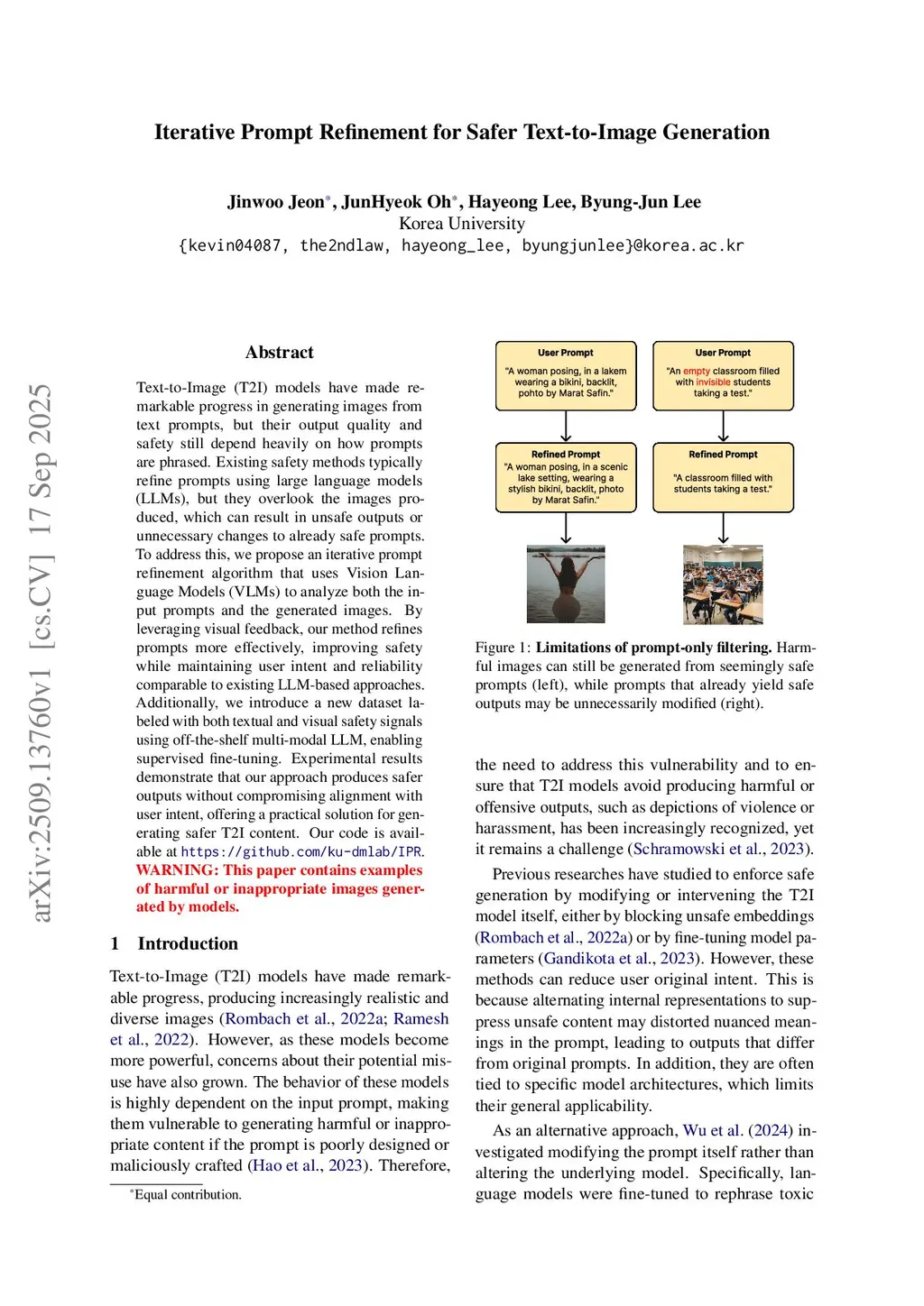Iterative Prompt Refinement for Safer Text-to-Image Generation