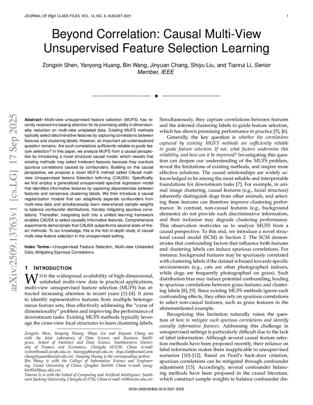 Beyond Correlation: Causal Multi-View Unsupervised Feature Selection Learning
