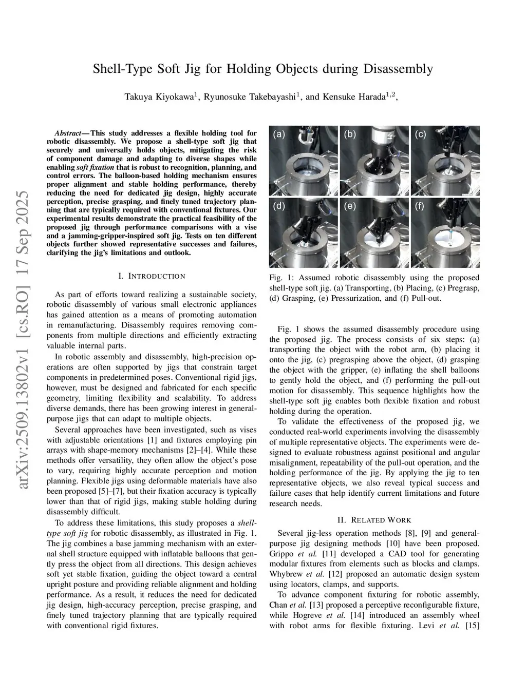 Shell-Type Soft Jig for Holding Objects during Disassembly