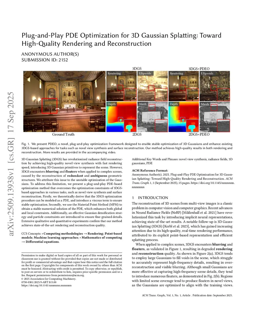 Plug-and-Play PDE Optimization for 3D Gaussian Splatting: Toward High-Quality Rendering and Reconstruction