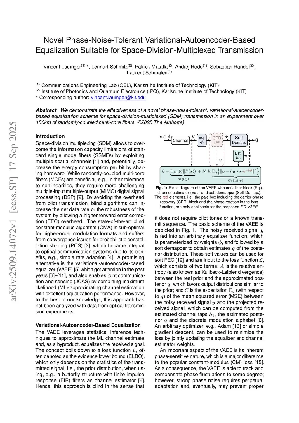 Novel Phase-Noise-Tolerant Variational-Autoencoder-Based Equalization Suitable for Space-Division-Multiplexed Transmission