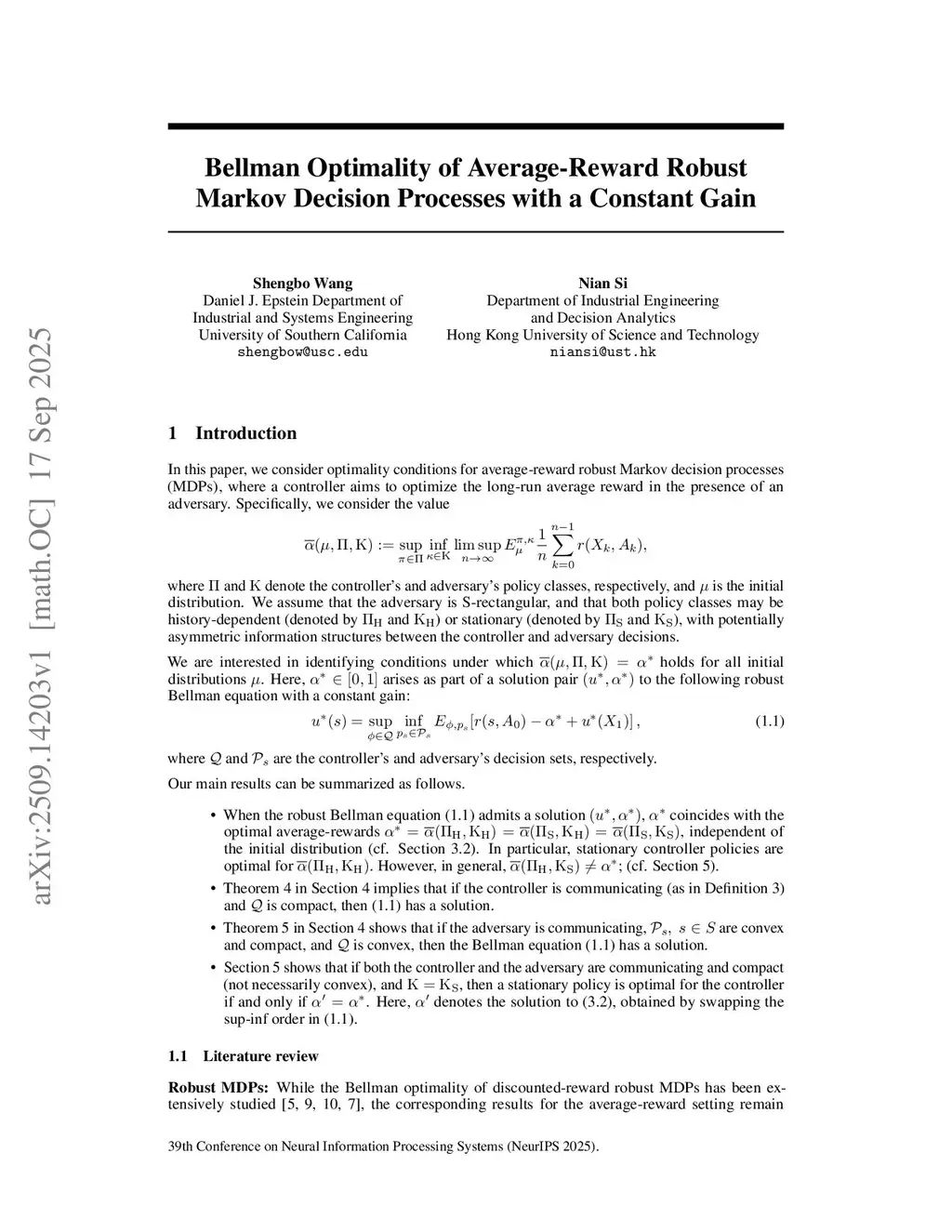 Learning and optimal control under robust Markov decision processes (MDPs) have received increasing attention, yet most existing theory, algorithms, and applications focus on finite-horizon or discounted models. Long-run average-reward formulations, while natural in many operations research and management contexts, remain underexplored. This is primarily because the dynamic programming foundations are technically challenging and only partially understood, with several fundamental questions remaining open. This paper steps toward a general framework for average-reward robust MDPs by analyzing the constant-gain setting. We study the average-reward robust control problem with possible information asymmetries between the controller and an S-rectangular adversary. Our analysis centers on the constant-gain robust Bellman equation, examining both the existence of solutions and their relationship to the optimal average reward. Specifically, we identify when solutions to the robust Bellman equation characterize the optimal average reward and stationary policies, and we provide one-sided weak communication conditions ensuring solutions' existence. These findings expand the dynamic programming theory for average-reward robust MDPs and lay a foundation for robust dynamic decision making under long-run average criteria in operational environments.