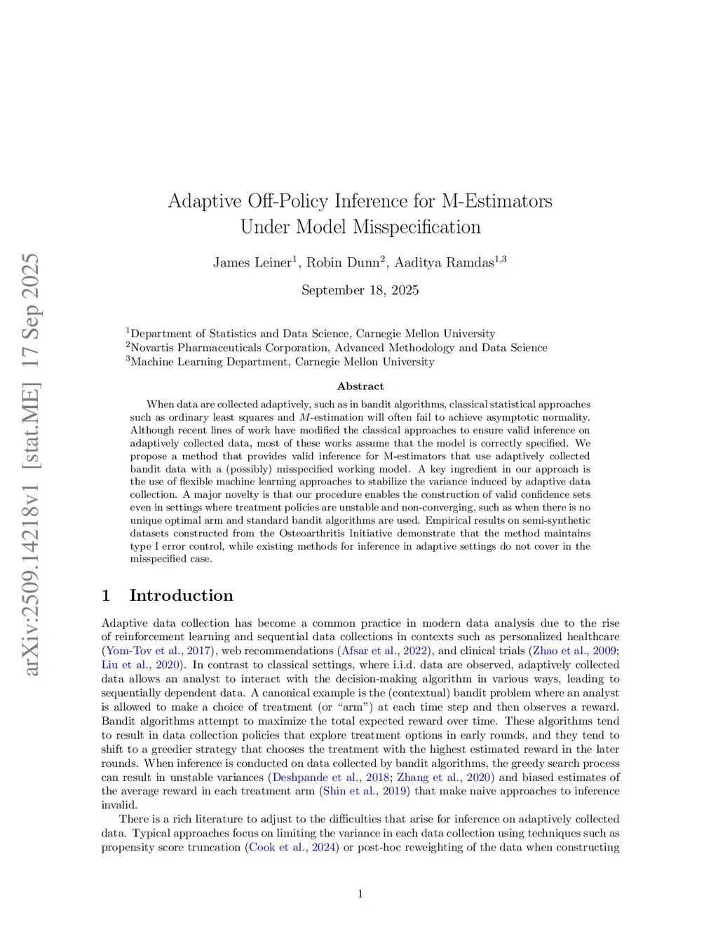 When data are collected adaptively, such as in bandit algorithms, classical statistical approaches such as ordinary least squares and -estimation will often fail to achieve asymptotic normality. Although recent lines of work have modified the classical approaches to ensure valid inference on adaptively collected data, most of these works assume that the model is correctly specified. The misspecified setting poses unique challenges because the parameter of interest itself may not be well-defined over a non-stationary distribution of rewards. We therefore tackle the problem of \emph{off-policy} inference in adaptive settings, where we uniquely define a projected solution over a stationary evaluation policy. Our method provides valid inference for -estimators that use adaptively collected bandit data with a possibly misspecified working model. A key ingredient in our approach is the use of flexible approaches to stabilize the variance induced by adaptive data collection. A major novelty is that the procedure enables the construction of valid confidence sets even in settings where treatment policies are unstable and non-converging, such as when there is no unique optimal arm and standard bandit algorithms are used. Empirical results on semi-synthetic datasets constructed from the Osteoarthritis Initiative demonstrate that the method maintains type I error control, while existing methods for inference in adaptive settings do not cover in the misspecified case.