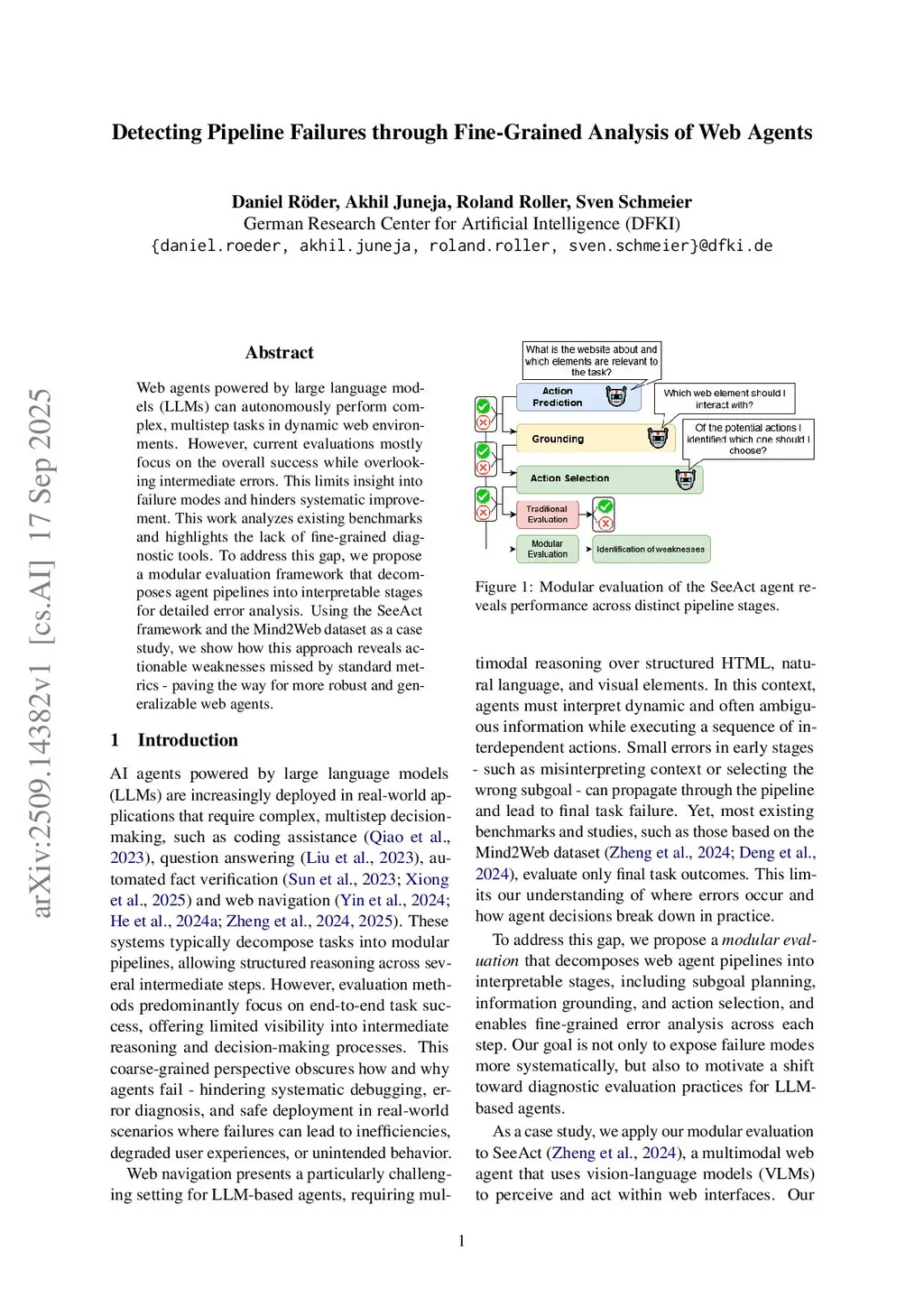 Detecting Pipeline Failures through Fine-Grained Analysis of Web Agents
