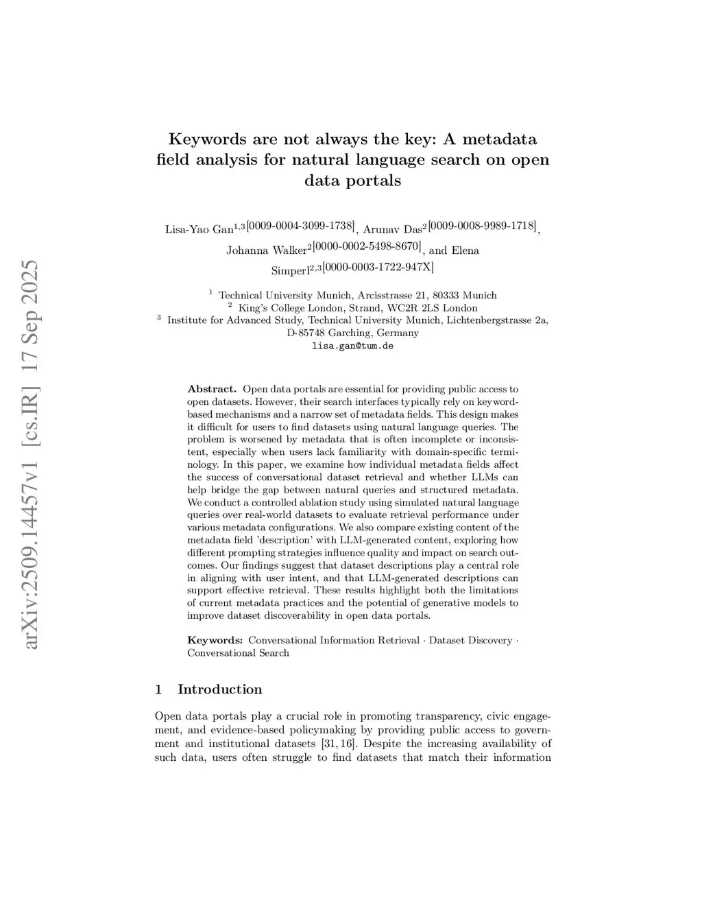 Keywords are not always the key: A metadata field analysis for natural language search on open data portals