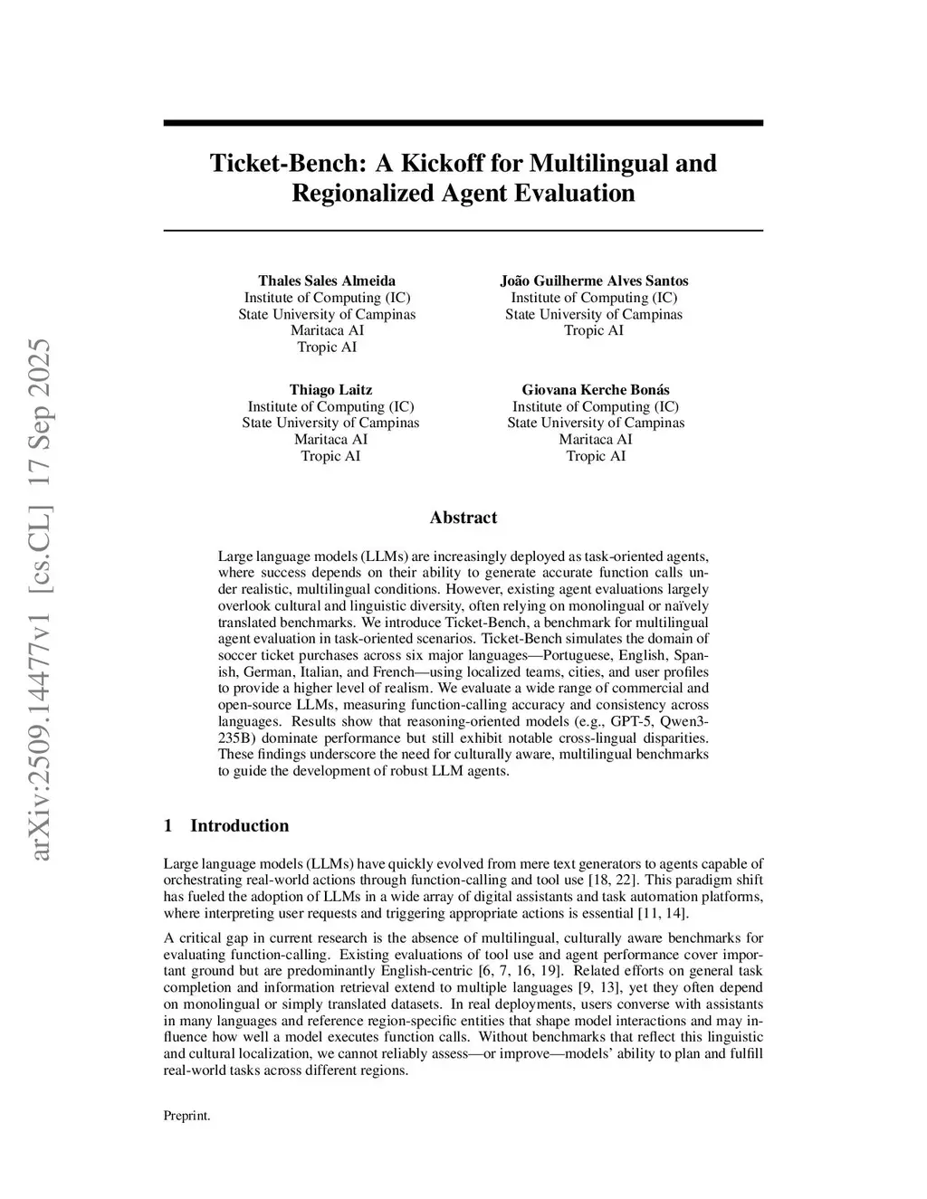 Large language models (LLMs) are increasingly deployed as task-oriented agents, where success depends on their ability to generate accurate function calls under realistic, multilingual conditions. However, existing agent evaluations largely overlook cultural and linguistic diversity, often relying on monolingual or naively translated benchmarks. We introduce Ticket-Bench, a benchmark for multilingual agent evaluation in task-oriented scenarios. Ticket-Bench simulates the domain of soccer ticket purchases across six major languages: Portuguese, English, Spanish, German, Italian, and French. Using localized teams, cities, and user profiles to provide a higher level of realism. We evaluate a wide range of commercial and open-source LLMs, measuring function-calling accuracy and consistency across languages. Results show that reasoning-oriented models (e.g., GPT-5, Qwen3-235B) dominate performance but still exhibit notable cross-lingual disparities. These findings underscore the need for culturally aware, multilingual benchmarks to guide the development of robust LLM agents.