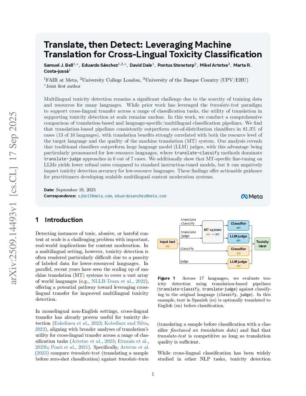 Translate, then Detect: Leveraging Machine Translation for Cross-Lingual Toxicity Classification