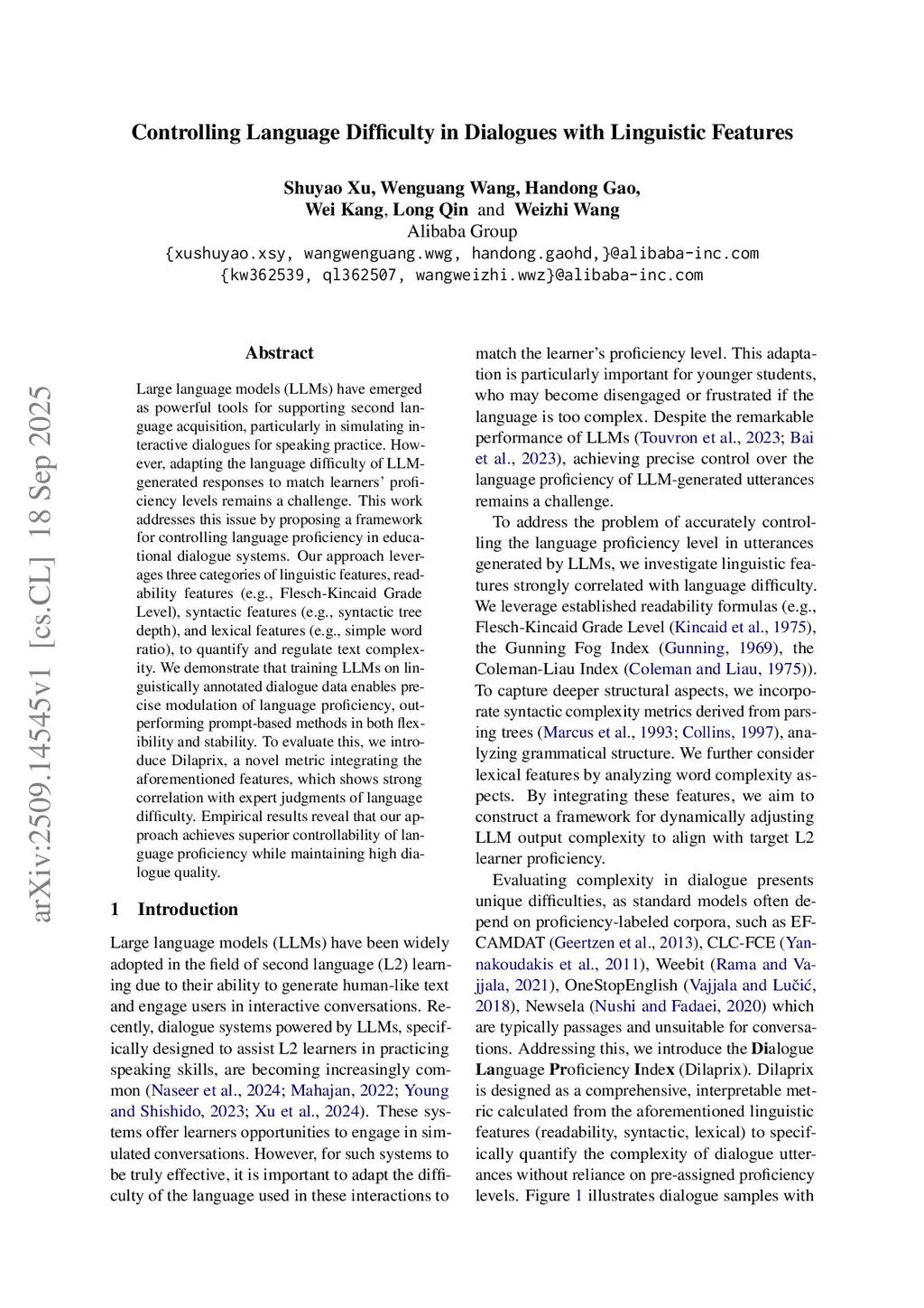Controlling Language Difficulty in Dialogues with Linguistic Features