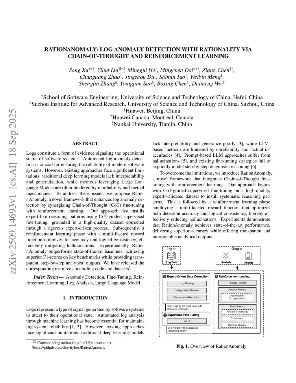 Logs constitute a form of evidence signaling the operational status of software systems. Automated log anomaly detection is crucial for ensuring the reliability of modern software systems. However, existing approaches face significant limitations: traditional deep learning models lack interpretability and generalization, while methods leveraging Large Language Models are often hindered by unreliability and factual inaccuracies. To address these issues, we propose RationAnomaly, a novel framework that enhances log anomaly detection by synergizing Chain-of-Thought (CoT) fine-tuning with reinforcement learning. Our approach first instills expert-like reasoning patterns using CoT-guided supervised fine-tuning, grounded in a high-quality dataset corrected through a rigorous expert-driven process. Subsequently, a reinforcement learning phase with a multi-faceted reward function optimizes for accuracy and logical consistency, effectively mitigating hallucinations. Experimentally, RationAnomaly outperforms state-of-the-art baselines, achieving superior F1-scores on key benchmarks while providing transparent, step-by-step analytical outputs. We have released the corresponding resources, including code and datasets.