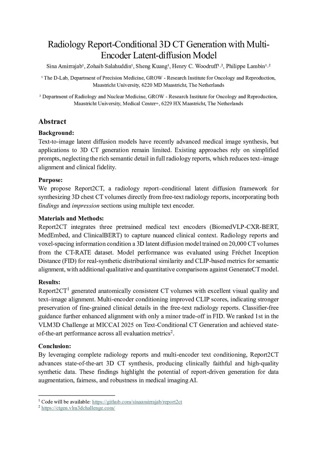 Radiology Report Conditional 3D CT Generation with Multi Encoder Latent diffusion Model