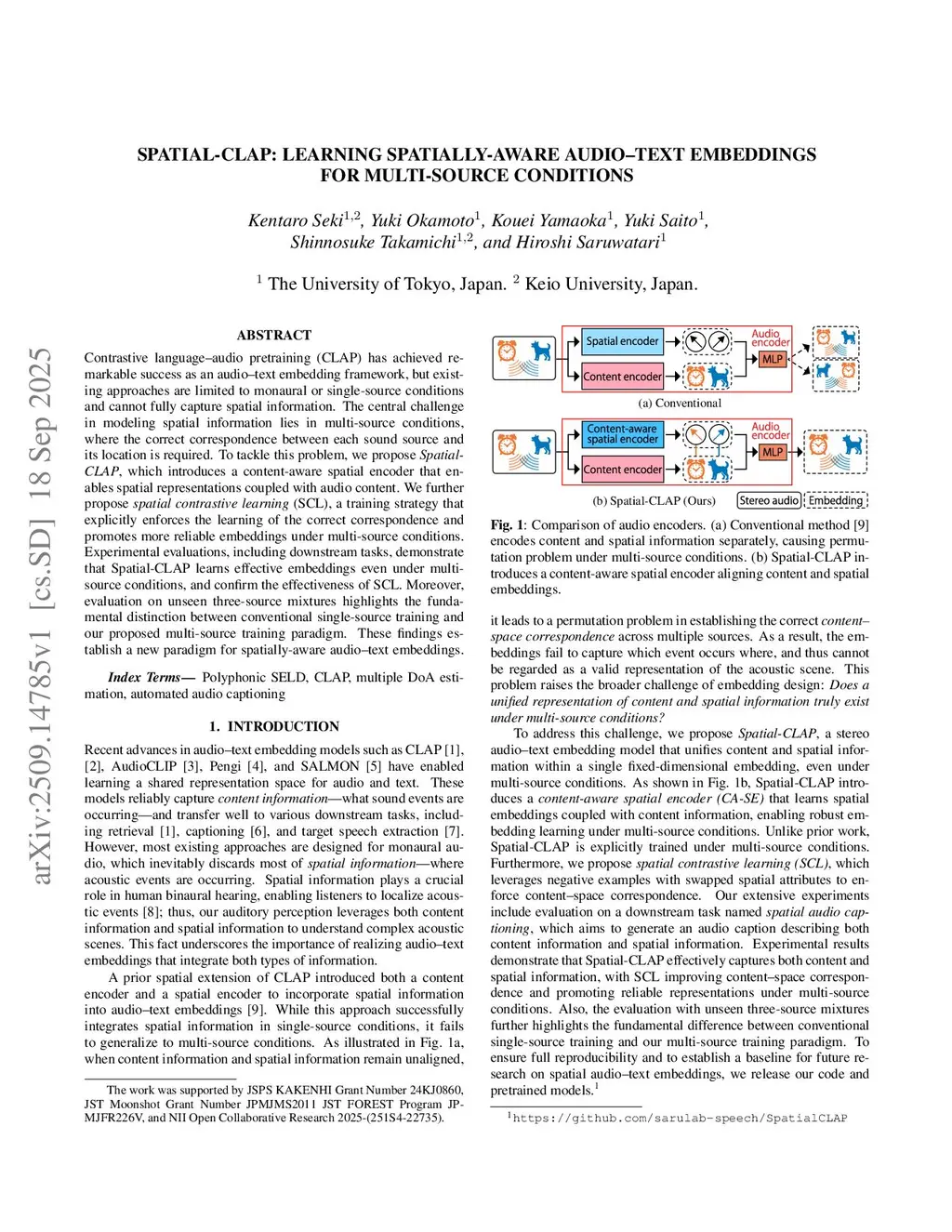 Contrastive language--audio pretraining (CLAP) has achieved remarkable success as an audio--text embedding framework, but existing approaches are limited to monaural or single-source conditions and cannot fully capture spatial information. The central challenge in modeling spatial information lies in multi-source conditions, where the correct correspondence between each sound source and its location is required. To tackle this problem, we propose Spatial-CLAP, which introduces a content-aware spatial encoder that enables spatial representations coupled with audio content. We further propose spatial contrastive learning (SCL), a training strategy that explicitly enforces the learning of the correct correspondence and promotes more reliable embeddings under multi-source conditions. Experimental evaluations, including downstream tasks, demonstrate that Spatial-CLAP learns effective embeddings even under multi-source conditions, and confirm the effectiveness of SCL. Moreover, evaluation on unseen three-source mixtures highlights the fundamental distinction between conventional single-source training and our proposed multi-source training paradigm. These findings establish a new paradigm for spatially-aware audio--text embeddings.