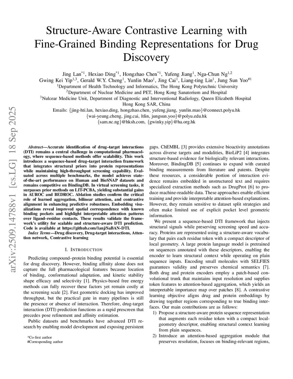 Structure-Aware Contrastive Learning with Fine-Grained Binding Representations for Drug Discovery