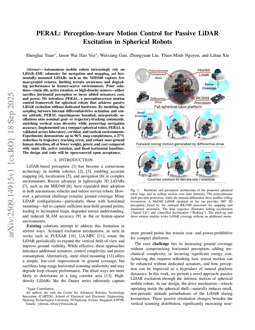PERAL: Perception-Aware Motion Control for Passive LiDAR Excitation in Spherical Robots