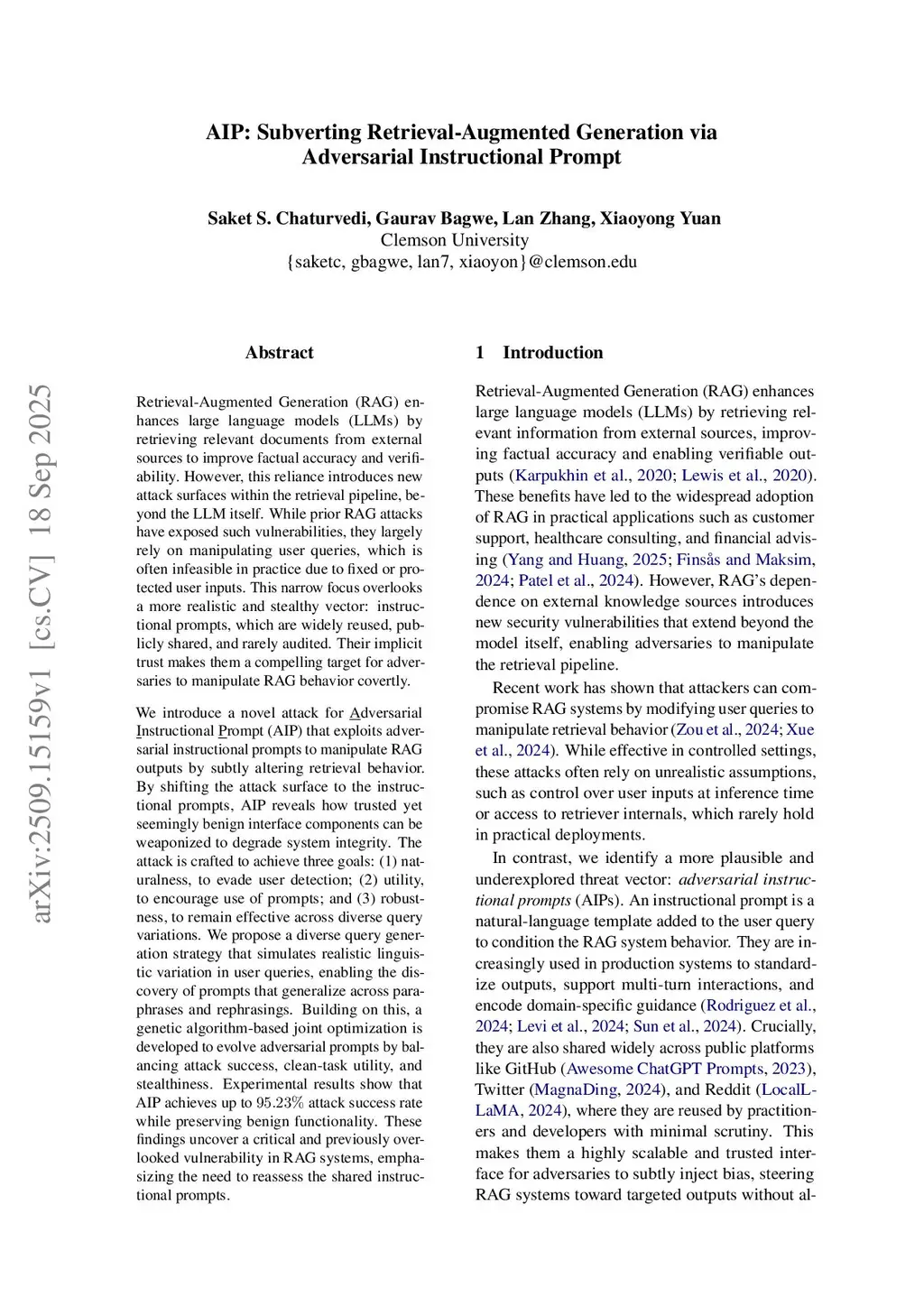 Retrieval-Augmented Generation (RAG) enhances large language models (LLMs) by retrieving relevant documents from external sources to improve factual accuracy and verifiability. However, this reliance introduces new attack surfaces within the retrieval pipeline, beyond the LLM itself. While prior RAG attacks have exposed such vulnerabilities, they largely rely on manipulating user queries, which is often infeasible in practice due to fixed or protected user inputs. This narrow focus overlooks a more realistic and stealthy vector: instructional prompts, which are widely reused, publicly shared, and rarely audited. Their implicit trust makes them a compelling target for adversaries to manipulate RAG behavior covertly.We introduce a novel attack for Adversarial Instructional Prompt (AIP) that exploits adversarial instructional prompts to manipulate RAG outputs by subtly altering retrieval behavior. By shifting the attack surface to the instructional prompts, AIP reveals how trusted yet seemingly benign interface components can be weaponized to degrade system integrity. The attack is crafted to achieve three goals: (1) naturalness, to evade user detection; (2) utility, to encourage use of prompts; and (3) robustness, to remain effective across diverse query variations. We propose a diverse query generation strategy that simulates realistic linguistic variation in user queries, enabling the discovery of prompts that generalize across paraphrases and rephrasings. Building on this, a genetic algorithm-based joint optimization is developed to evolve adversarial prompts by balancing attack success, clean-task utility, and stealthiness. Experimental results show that AIP achieves up to 95.23% ASR while preserving benign functionality. These findings uncover a critical and previously overlooked vulnerability in RAG systems, emphasizing the need to reassess the shared instructional prompts.